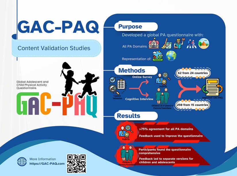 In this article, we report the content validation studies completed as part of the GAC-PAQ project. First, we completed a survey involving 62 experts in physical activity measurement and/or surveillance from 24 countries. Next, we completed cognitive interviews with 250 children and adolescents and one of their parents or guardians. We also discuss changes made to the questionnaire based on feedback from participants.