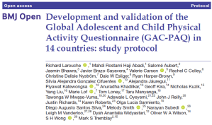 We are pleased to announce that our GAC-PAQ study protocol, “Development and validation of the Global Adolescent and Child Physical…